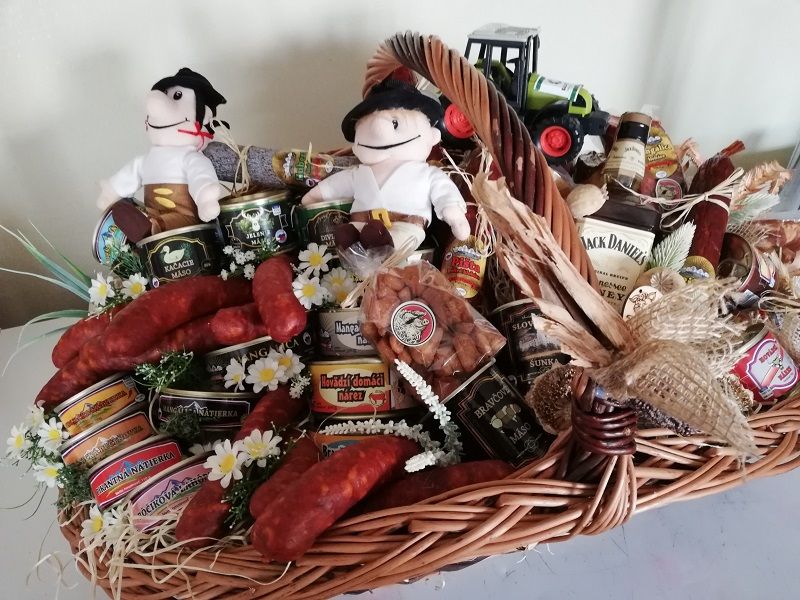 Druhy používaných výrobkov: dusená šunka, údené mäsá podľa výberu, údené klobásy (pálivá,lahôdková) , slaniny, syry, zelenina, konzervy.